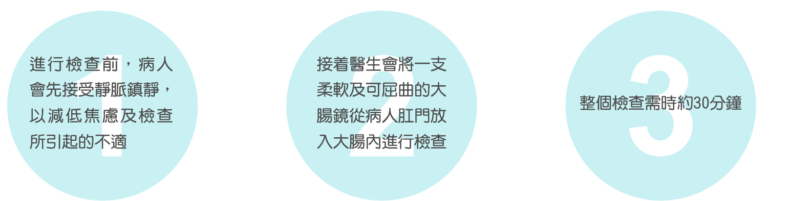检查前三天进食低渣(低纤维)食物;检查前一天黄昏按处方服用「肠道清洁剂」以排清结肠积便;检查前六小时禁食,药物及少量清水除外